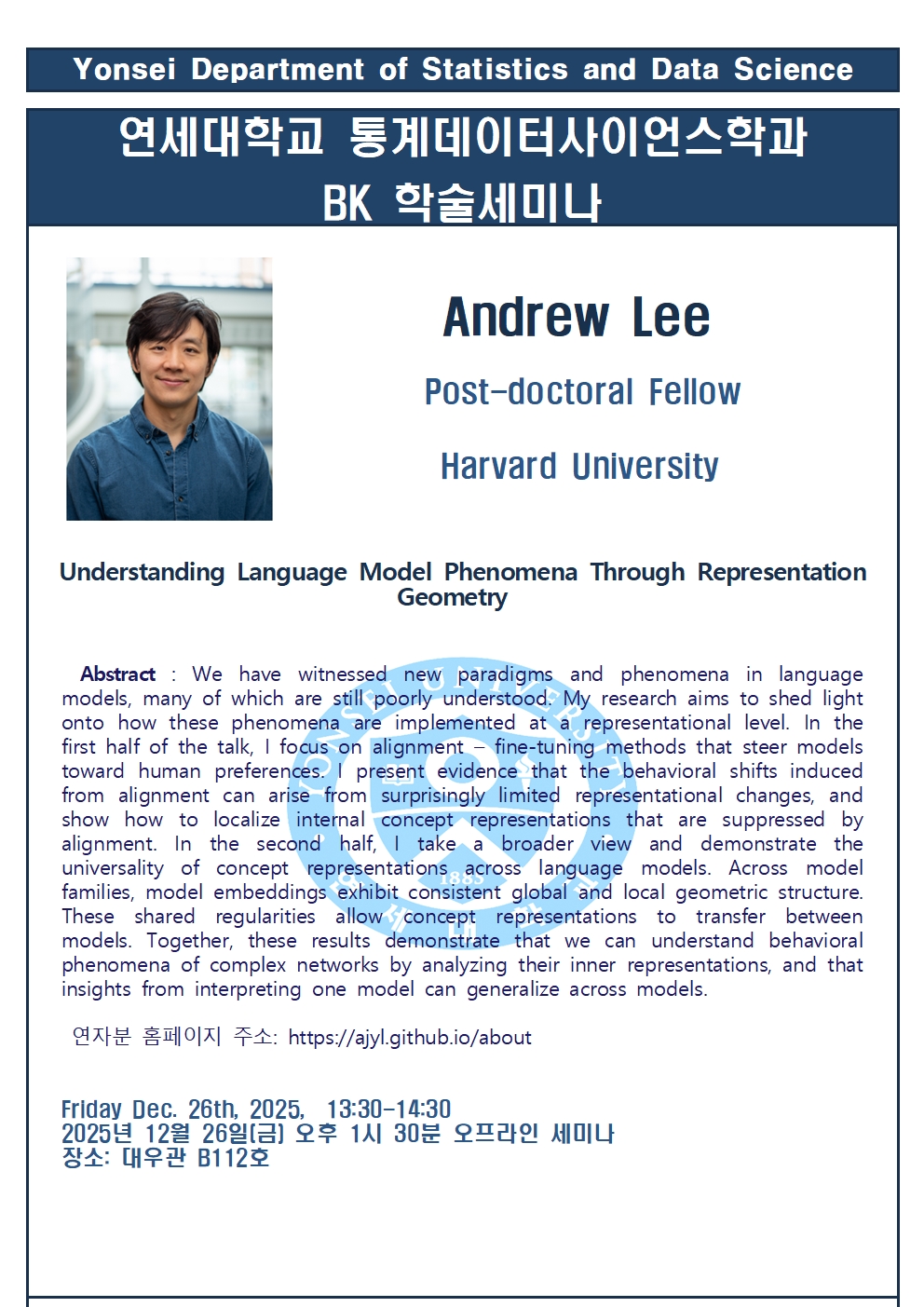 # Understanding Language Model Phenomena Through Representation Geometry 2025.12.26 빅데이터기반의융복합데이터사이언스교육및연구